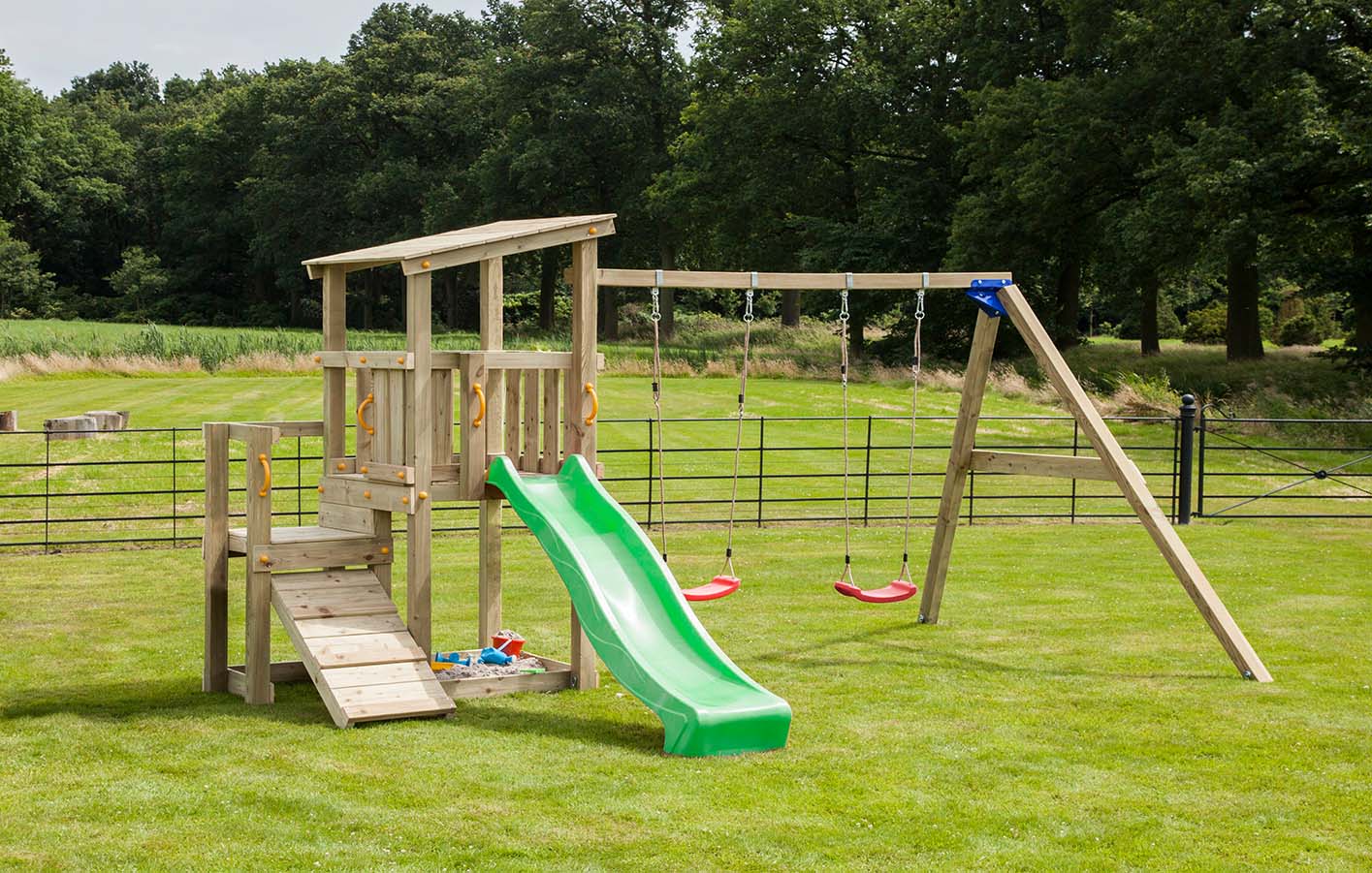 und geben Ihnen Tipps für das passende Spielgerät: „Kinderspielgeräte werden häufig als Bausätze angeboten, die vom Heimwerker zuhause selbst aufgebaut werden können. Die Bausätze gibt es meist in unterschiedlichen Modulen. Das einfachste Modul ist dann zum Beispiel ein Spielturm, der entweder sofort oder nach und nach erweitert werden kann. Der Spielturm kann dann noch mit einer Wellenrutsche (gerne auch mit integriertem Wasseranschluss), einer Einzel- oder Doppelschaukel und/oder einem Klettergerüst ausgestattet werden. Im Bausatz enthalten sind in der Regel eine ausführliche Schritt-für-Schritt-Anleitung und ein Montageset. Für Kinderspielgeräte eignen sich Holzarten mit einer natürlichen Resistenz gegen Fäulnis wie z.B. kesseldruckimprägnierter Kiefer oder heimischer Lärche.“