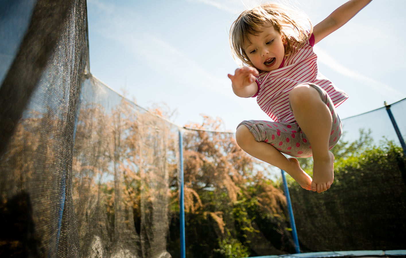 „Ein Trampolin fördert Gleichgewicht, Koordination und Ausdauer. Achten Sie darauf, dass es TÜV-geprüft ist und ein Sicherheitsnetz besitzt, um die Unfallgefahr zu minimieren“, so rät man bei Sterly Holzmarkt aus Lübeck.